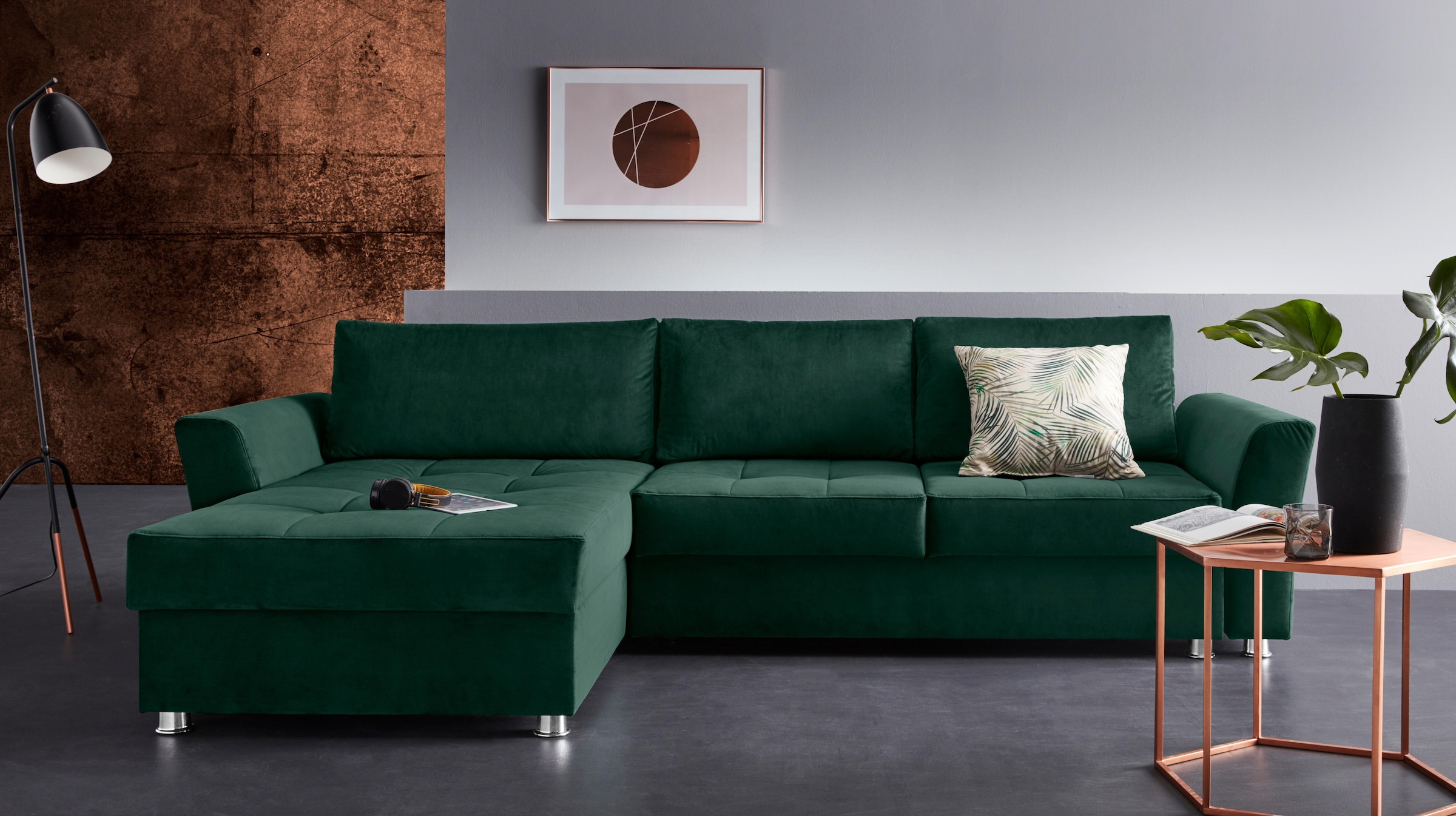 Trendmanufaktur ecksofa, mit ottomane und federkern, wahlweise mit bettfunktion.
